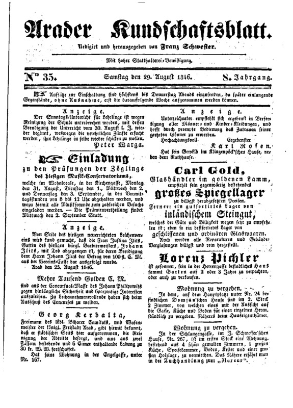 Arader Kundschaftsblatt, nr. 35, 1846-08-29