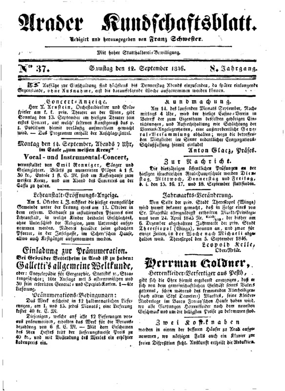 Arader Kundschaftsblatt, nr. 37, 1846-09-12