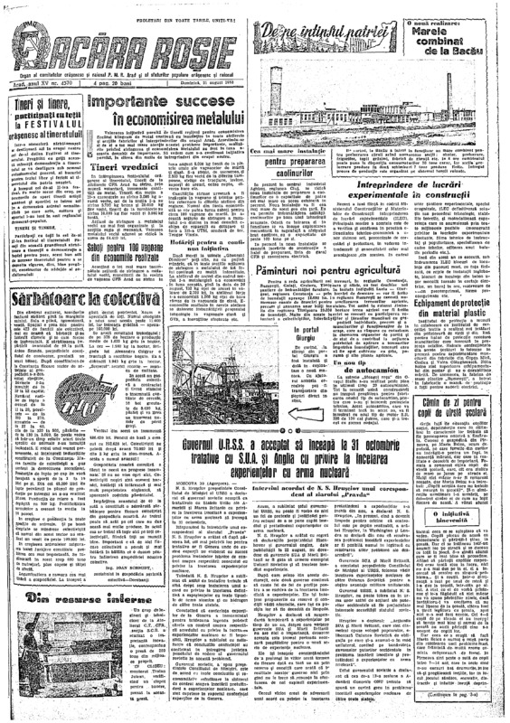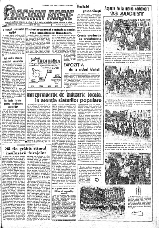 Flacăra Roșie, Anul XV, Nr. 4363, 1958-08-22