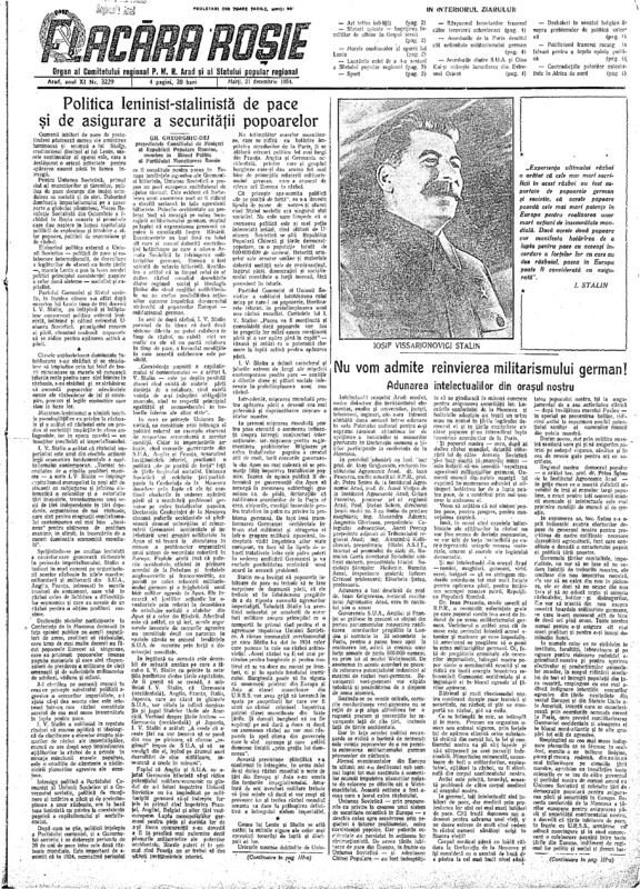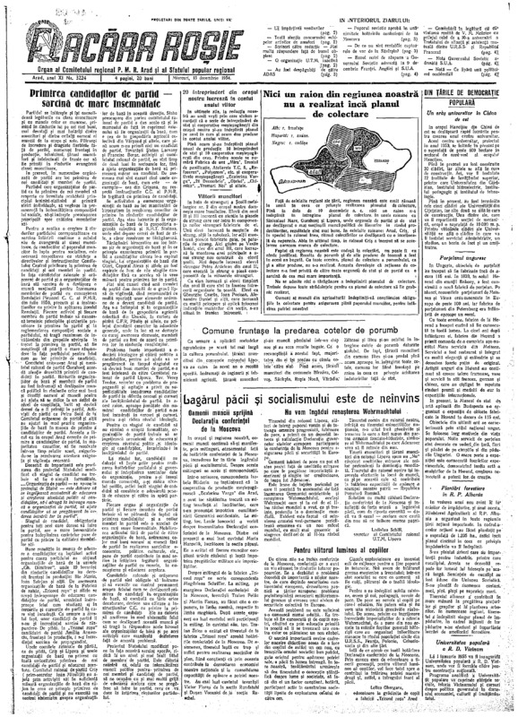 Flacăra Roșie, Anul XI, Nr. 3236, 1954-12-29