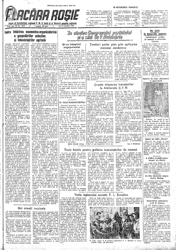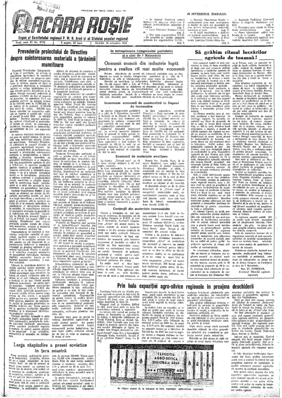 Flacăra Roșie, Anul XI, Nr. 3178, 1954-10-22