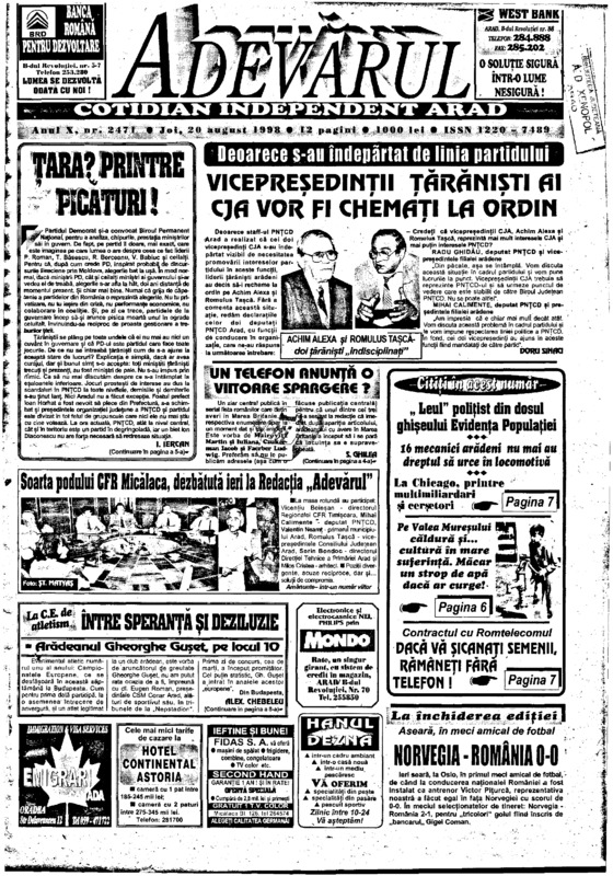 Adevărul, anul X, nr. 2471, 1998-08-20