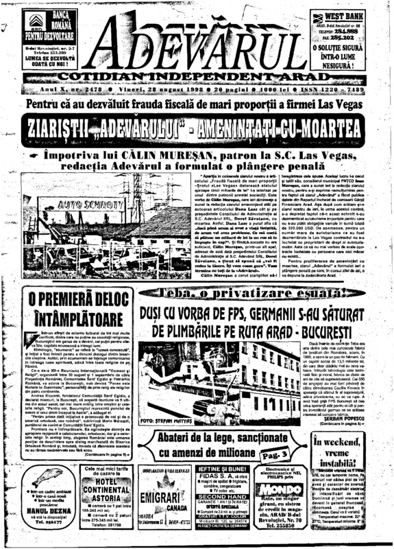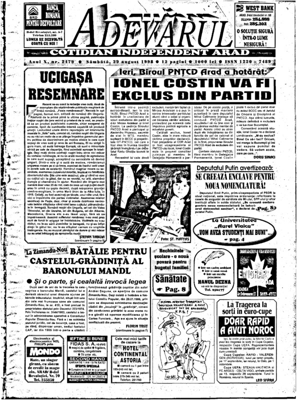Adevărul, anul X, nr. 2478, 1998-08-28
