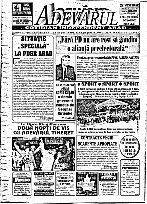 Adevărul, anul X, nr. 2472, 1998-08-21