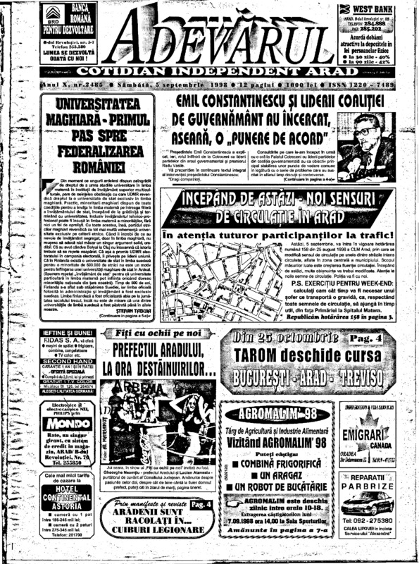 Adevărul, anul X, nr. 2485, 1998-09-05