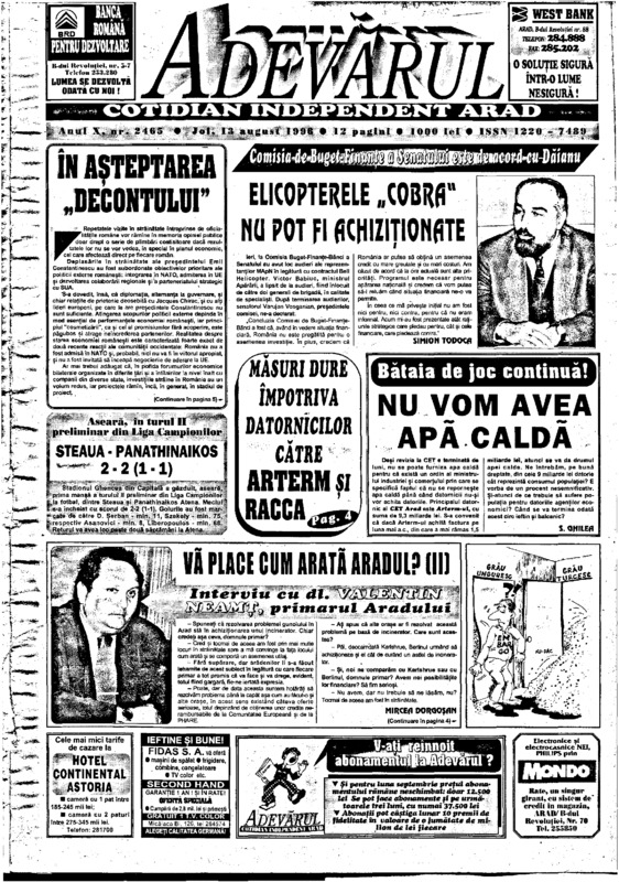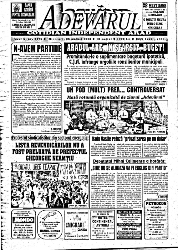 Adevărul, anul X, nr. 2476, 1998-08-26