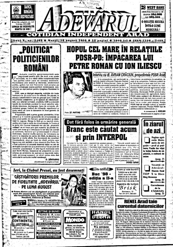 Adevărul, anul X, nr. 2469, 1998-08-18
