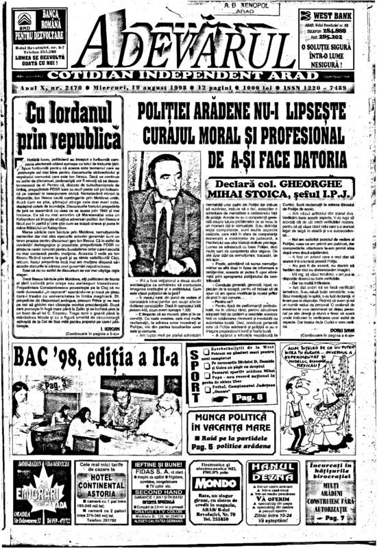 Adevărul, anul X, nr. 2470, 1998-08-19