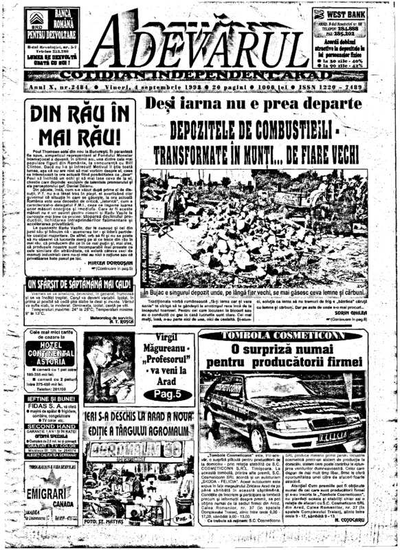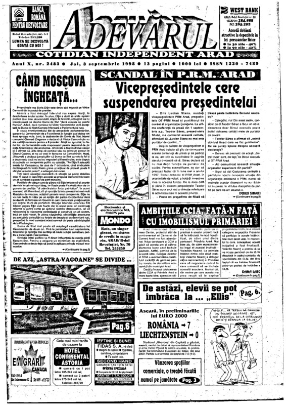 Adevărul, anul X, nr. 2483, 1998-09-03