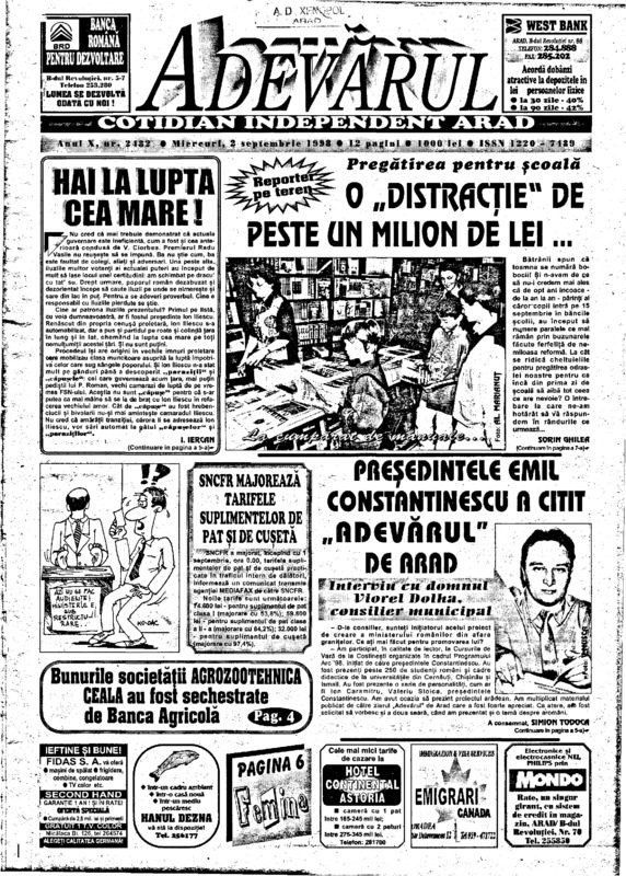 Adevărul, anul X, nr. 2482, 1998-09-02