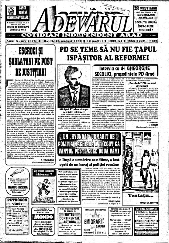 Adevărul, anul X, nr. 2475, 1998-08-25
