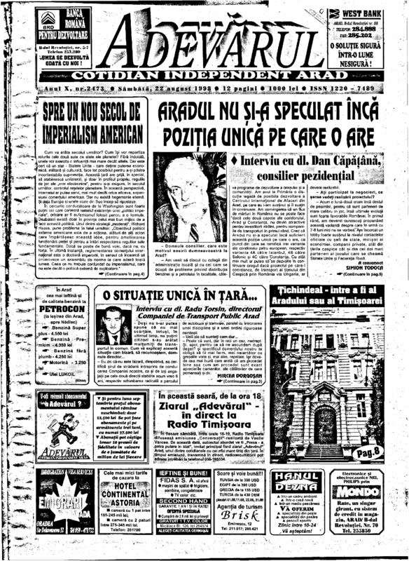 Adevărul, anul X, nr. 2473, 1998-08-22