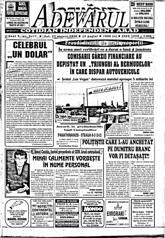 Adevărul, anul X, nr. 2477, 1998-08-27