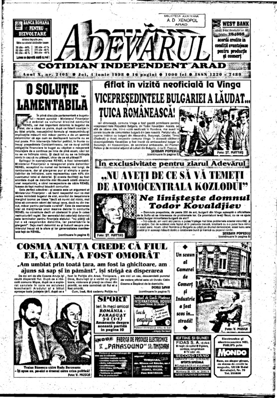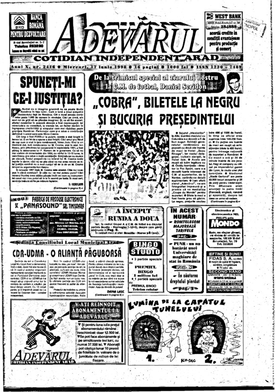 Adevărul, anul X, nr. 2415, 1998-06-16