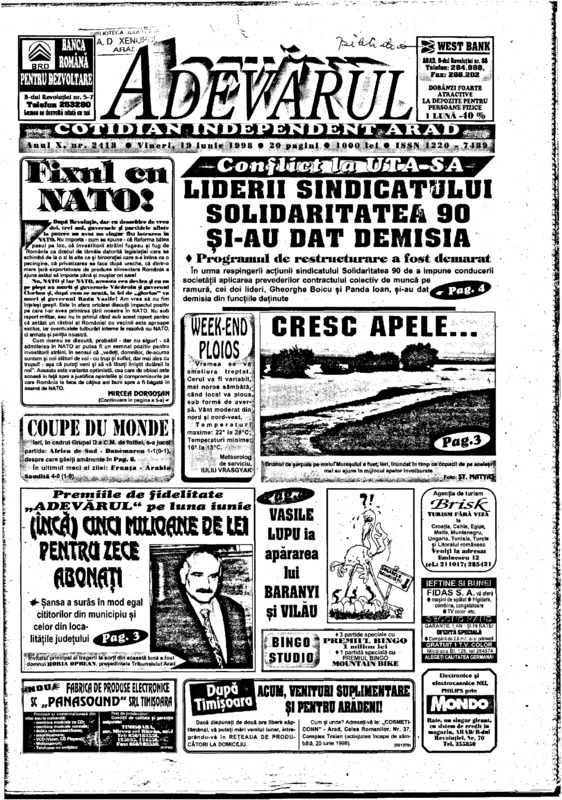 Adevărul, anul X, nr. 2418, 1998-06-19