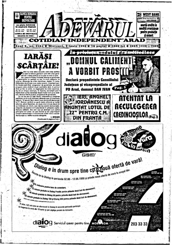 Adevărul, anul X, nr. 2404, 1998-06-03