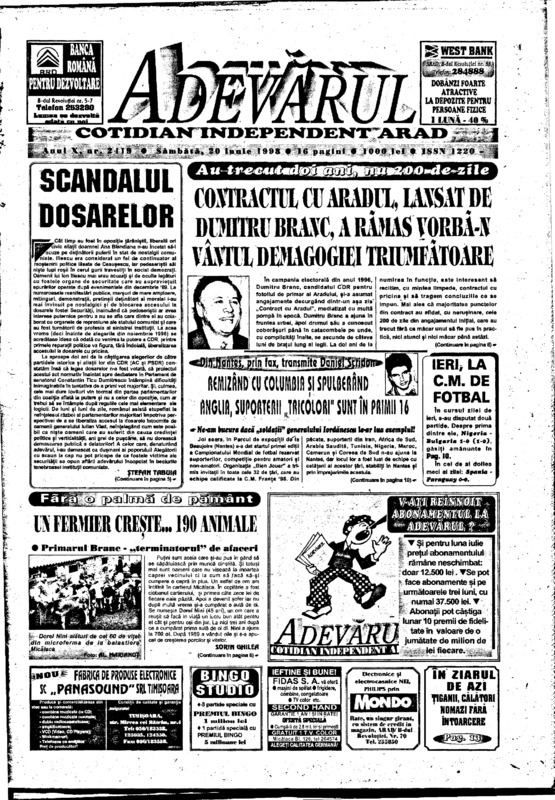 Adevărul, anul X, nr. 2419, 1998-06-20