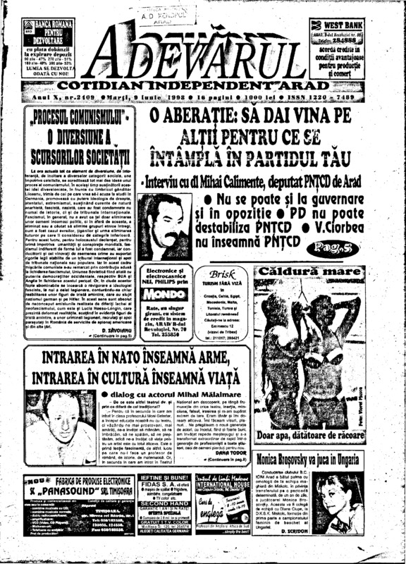 Adevărul, anul X, nr. 2409, 1998-06-09