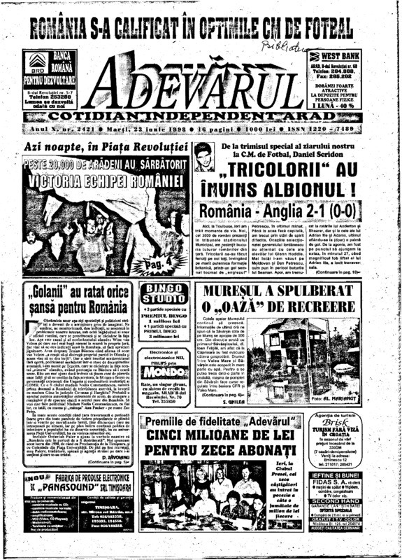 Adevărul, anul X, nr. 2421, 1998-06-23