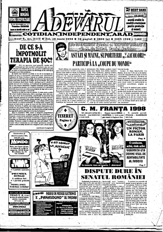Adevărul, anul X, nr. 2417, 1998-06-18