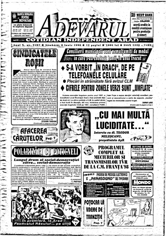 Adevărul, anul X, nr. 2407, 1998-06-06