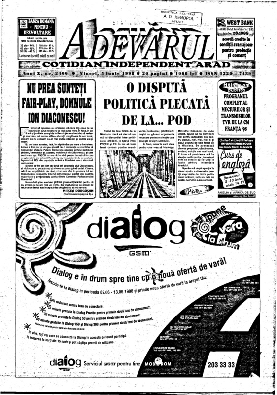 Adevărul, anul X, nr. 2406, 1998-06-05