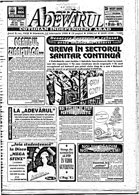 Adevărul, anul X, nr. 2313, 1998-02-12
