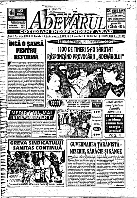 Adevărul, anul X, nr. 2316, 1998-02-16