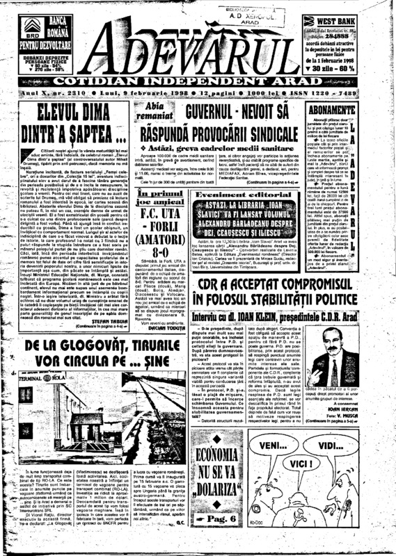 Adevărul, anul X, nr. 2310, 1998-02-09