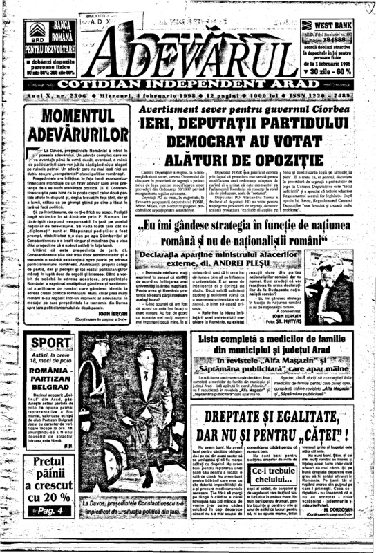 Adevărul, anul X, nr. 2302, 1998-01-30