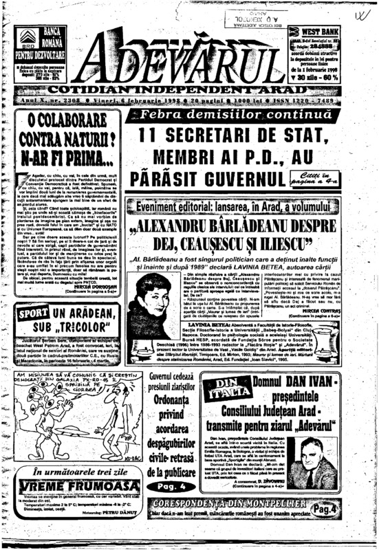 Adevărul, anul X, nr. 2308, 1998-02-06