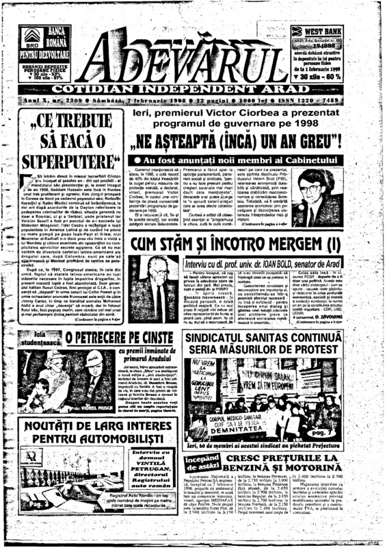 Adevărul, anul X, nr. 2309, 1998-02-07