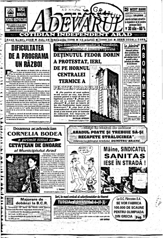 Adevărul, anul X, nr. 2319, 1998-02-19