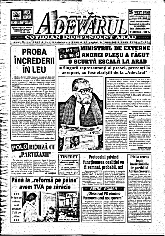 Adevărul, anul X, nr. 2307, 1998-02-05