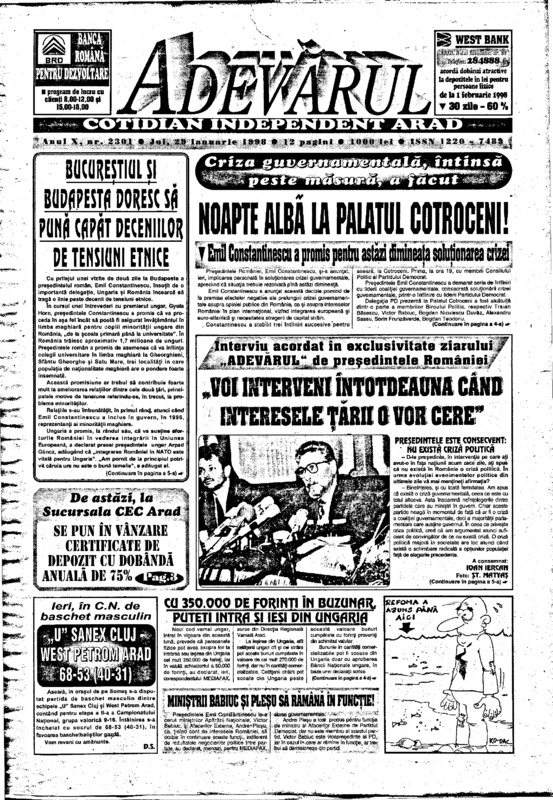 Adevărul, anul X, nr. 2301, 1998-01-29