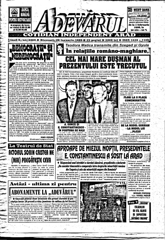Adevărul, anul X, nr. 2300, 1998-01-28