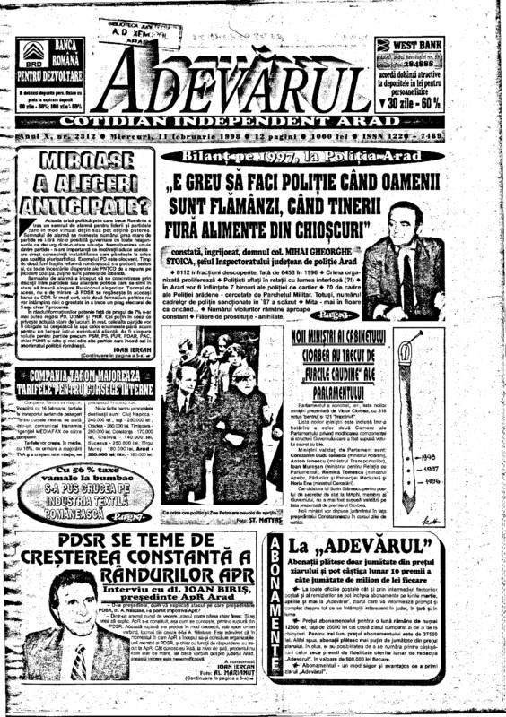 Adevărul, anul X, nr. 2312, 1998-02-11