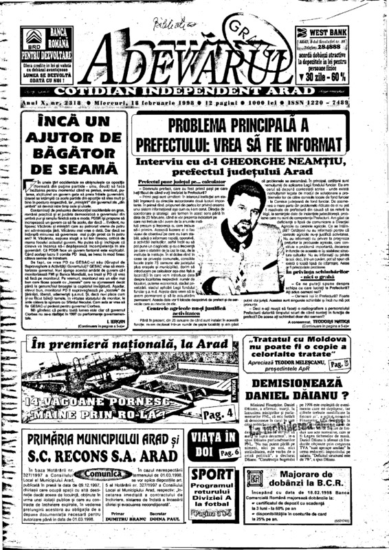 Adevărul, anul X, nr. 2318, 1998-02-18