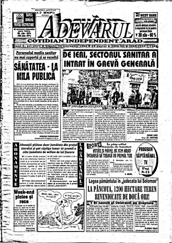 Adevărul, anul X, nr. 2314, 1998-02-13