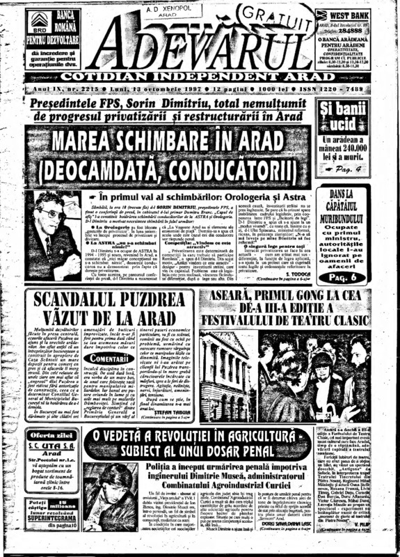 Adevărul, anul IX, nr. 2215, 1997-10-13