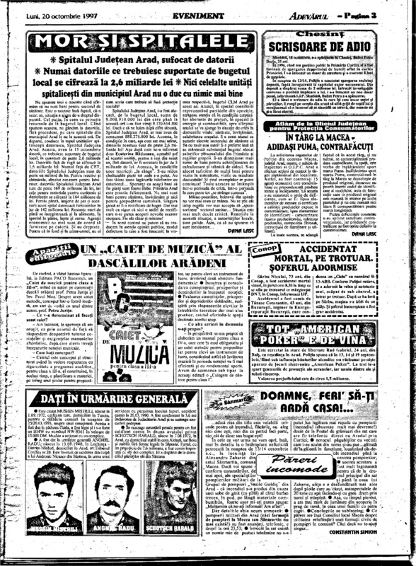 Adevărul, anul IX, nr. 2221, 1997-10-20