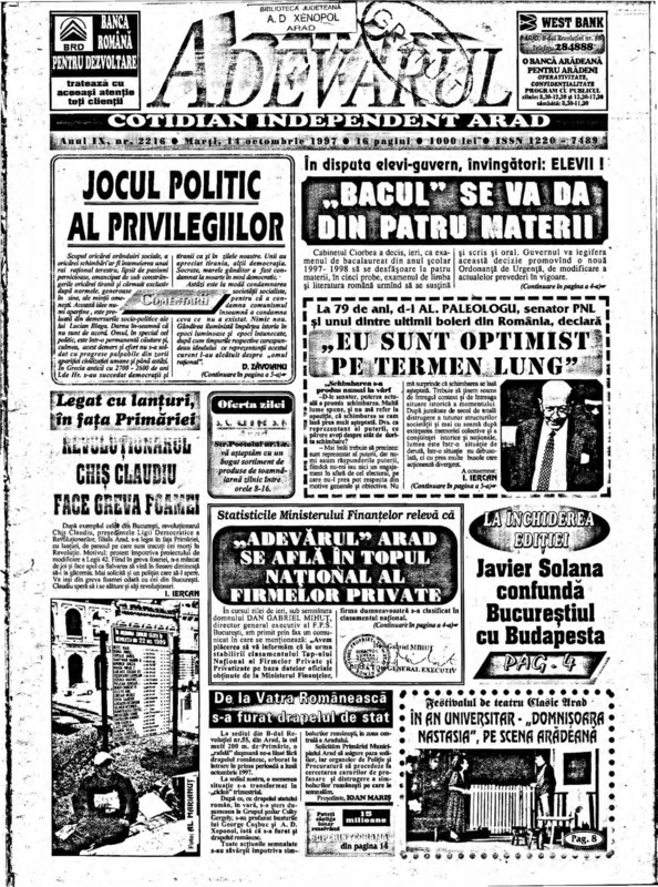 Adevărul, anul IX, nr. 2216, 1997-10-14