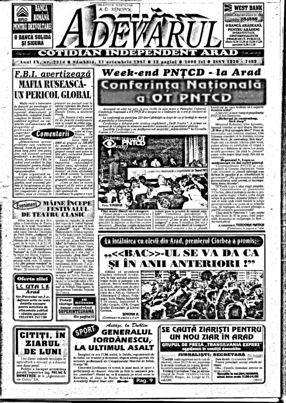 Adevărul, anul IX, nr. 2214, 1997-10-11