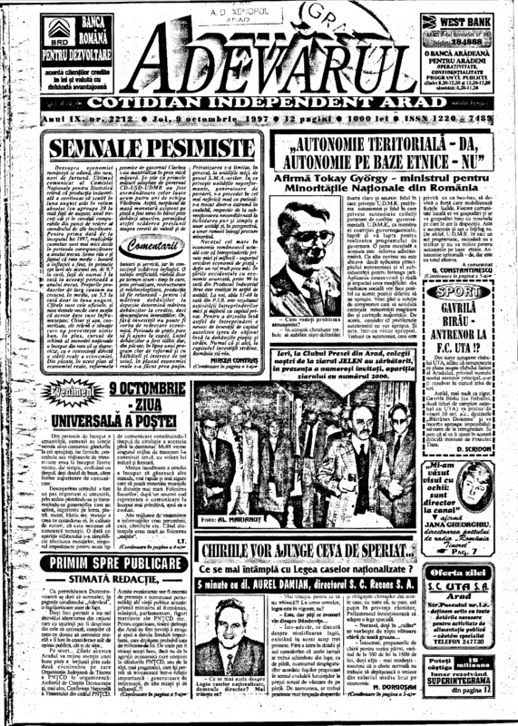 Adevărul, anul IX, nr. 2212, 1997-10-09