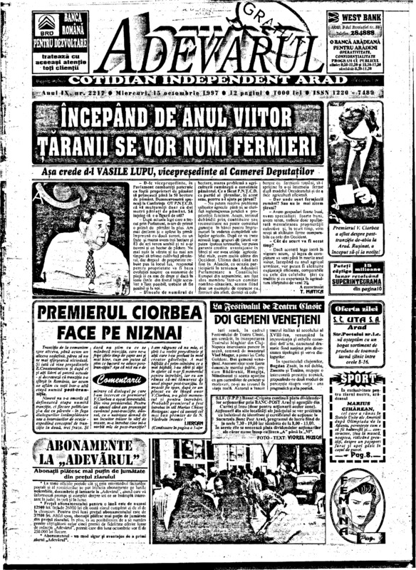 Adevărul, anul IX, nr. 2217, 1997-10-15