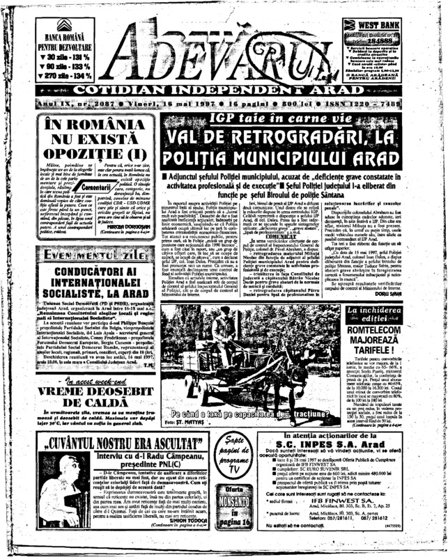Adevărul, anul IX, nr. 2087, 1997-05-16