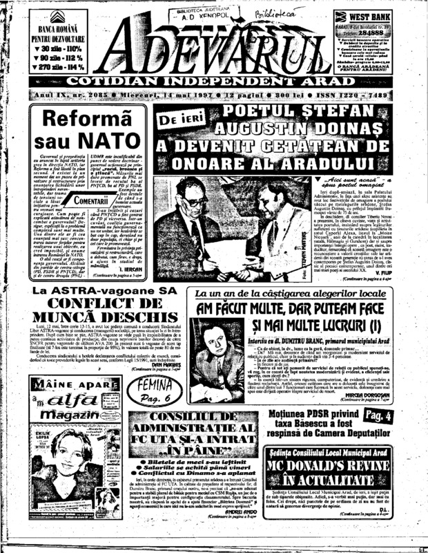 Adevărul, anul IX, nr. 2085, 1997-05-14