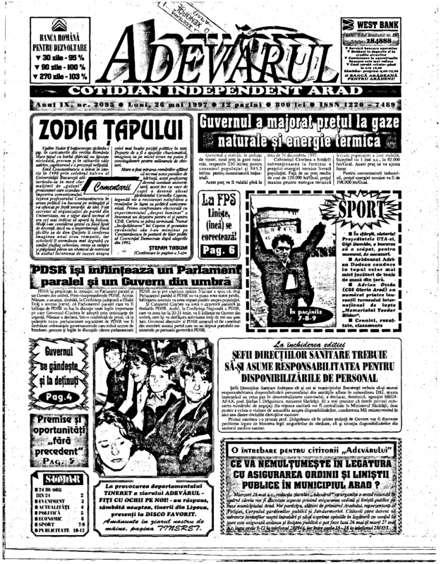 Adevărul, anul IX, nr. 2095, 1997-05-26