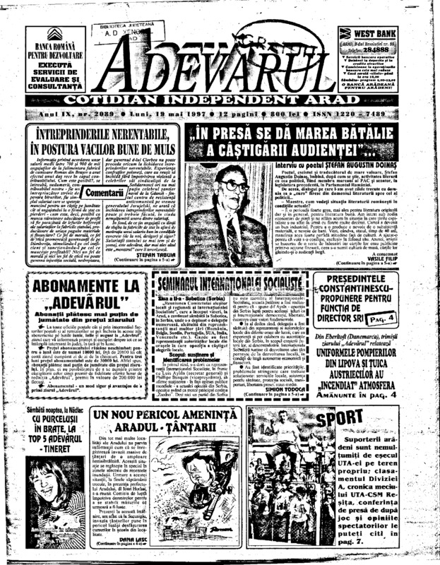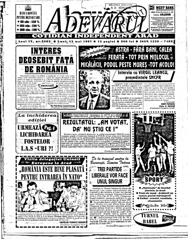 Adevărul, anul IX, nr. 2083, 1997-05-12