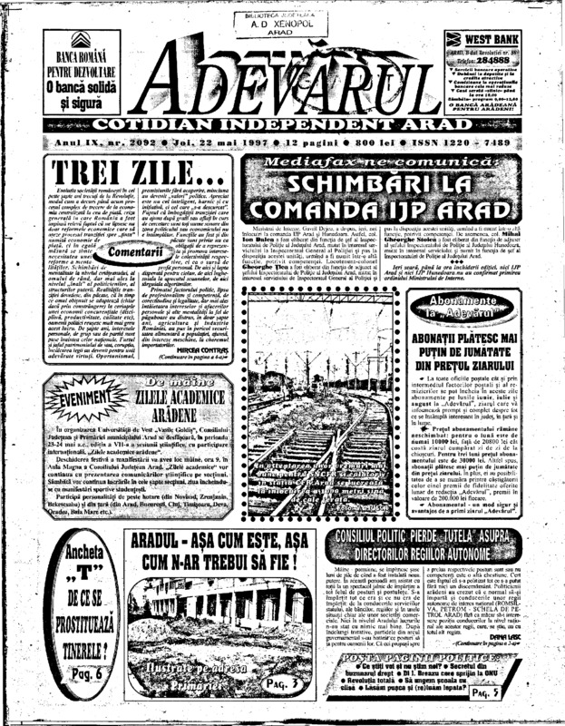 Adevărul, anul IX, nr. 2092, 1997-05-22